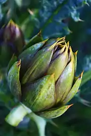English artichoke is in turn of Arabic origin, ultimately from الْخُرْشُوف (al-ḵuršūf, “artichoke”).
