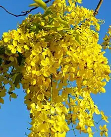 - golden shower, golden rain tree, any flowering plant of the species Cassia fistula