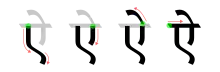 - A vowel of the Devanagari script. Its matra, used to modify the inherent vowel in a consonant is written ै. For example the first consonant क with the matra looks like: कै.