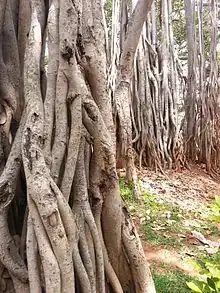 - banyan, strangler fig, banyan fig (Ficus benghalensis, syn. Ficus indica[1])