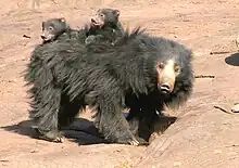 தன் குட்டிகளுடன் நிற்கும் ஒரு கரடி