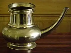- pitcher pot, a spouted pot, lota. Usually made of bell metal. Traditionally used in households for holding water. Used for puja rituals also.