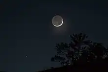 - crescent moon; The Moon when only a small arc like portion of it is illuminated by the Sun.