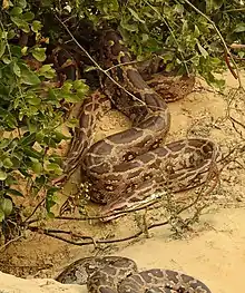A pair of Indian pythons (Python molurus)