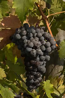 - grapevine; A woody vine in the genus Virus that yields edible berries born in clusters, commonly used to make wine.