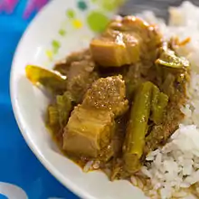 | Orthographic | ข้าวแกง kʰ ˆ ā w æ k ŋ | |