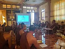 ခမဳသင်မန်ဟီုဂလာန်ကဵုပရင်မဆေင်ကဵုဂကောံသၚ်သၟတ်မန်ဂမၠိုင် (“Mon monks discuss Mon Young Sanghas”)
