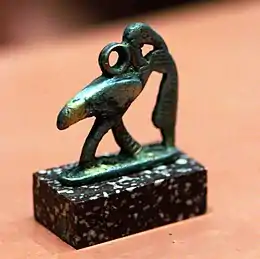 Thoth-Iah as an ibis with the moon on his back and writing reed.