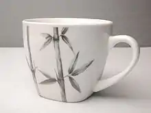 カップ: a tea cup with a handle, decorated with bamboo motif