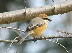 モズ (mozu): a bull-headed shrike in winter in Japan.