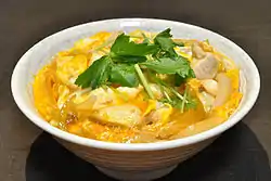 - 親子丼 (oyakodon): literally “parent and child donburi”: chicken and egg donburi, salmon and salmon roe donburi