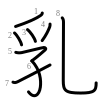 乳 (Kangxi radical 5, 乙+7, 8 strokes, cangjie input 月木山 (BDU), four-corner 22410, composition ⿰孚乚)