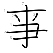 | For pronunciation and definitions of 亊 – see 事 (“thing; matter; task; work; job; career; etc.”). (This character is a variant form of 事). |