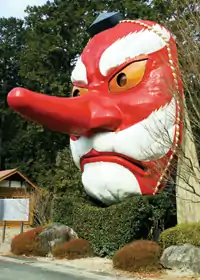 - (Japanese mythology, Shinto, folklore) a tengu, a mythical Japanese creature, typically birdlike and having a long nose