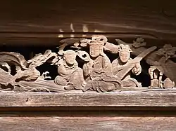 - [from 1563] a decorative wood carving or screen in the transom or lintel above a doorway in Japanese architecture (note that the use of sliding panel doors may mean that the transom is essentially as long as the wall)