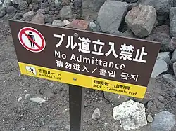 立入禁止 (tachiiri kinshi): a Blue Road no admittance sign on the Yoshida Trail, Yamanashi Prefecture