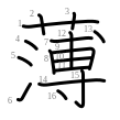 | For pronunciation and definitions of 薄 – see the following entry. | ||