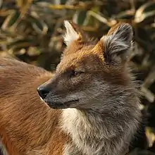 This canid is often misidentified as a jackal (胡狼) or a wolf (狼) by English translators (Schafer, 1991). Chinese translators also often use 豺 to translate "jackal".