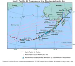 - An archipelago of more than 300 small volcanic islands forming an island arc in the Northern Pacific Ocean, between Alaska and the Kamchatka Peninsula of Asia; part of the United States.