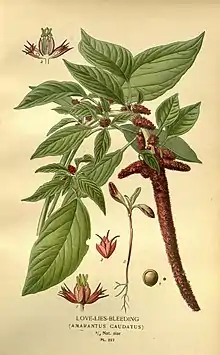 1. A taxonomic species within the family Amaranthaceae foxtail amaranth, Inca wheat.