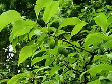 American wild plum foliage and immature fruit