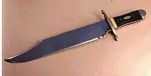 - A large sheath knife, usually of clip point style and usually with large guards at the ricasso.