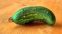 - (US) A Christmas decoration shaped like a pickle, hidden on a Christmas tree, with the finder receiving either a reward or good fortune for the following year.