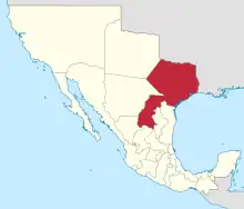 - (historical) A former constituent state of the United Mexican States, part of which revolted and became the Republic of Texas, the rest stayed and remained as Coahuila. Official name: Estado Libre y Soberano de Coahuila y Tejas.