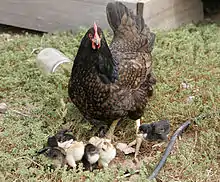 - brooding hen; hen with chicks