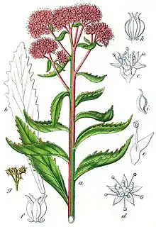 1. A taxonomic species within the family Crassulaceae orpine, Aaron's rod.