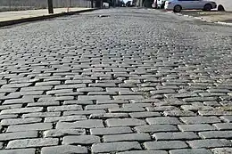 Kopfsteinstraße f (genitive Kopfsteinstraße, plural Kopfsteinstraßen, diminutive Kopfsteinsträßchen n)