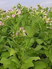 - Nicotiana tabacum - type species; Nicotiana glauca (tree tobacco, San Juan tree), Nicotiana rustica (Aztec tobacco) - selected other species; for others see