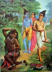 From Sanskrit शूर्पणखा (śūrpaṇakhā); ultimately from शूर्प (śūrpa, “winnowing fan”) + नख (nakha, “nail”).