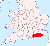 - A former county of south-east England, England, United Kingdom, now divided into East- and West-), then bordered by Surrey, Kent, Hampshire and the English Channel.