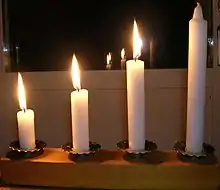 - a candlestick with room for four candles, lit one by one every Sunday during Advent