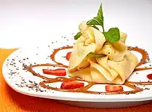 2. meal consisting of a filling, which can be sweet or savory, enclosed in a dough, which can be pancake, folded and closed with a food cord.