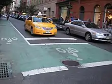 - A designated area at the head of a motorised traffic lane, providing cyclists with increased safety and an easier left turn at the signal.