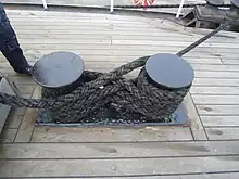 Mooring bitts on board SS Shieldhall, a preserved steamship.