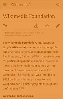 A Wikipedia article read on a mobile with a blue light filter.