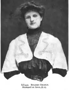 A woman wearing a bolero jacket.