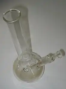 - A vessel, usually made of glass or ceramic and filled with water, used in smoking various substances, especially cannabis.