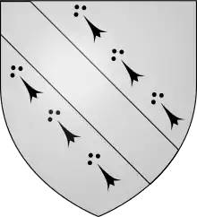 Arms of Jean de La Haye (1574) : Bande côtoyée de six mouchetures d’hermines de sable.