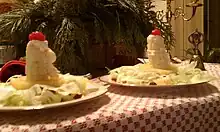 , assembled to look like a lit candle in a candleholder, popular in mid-century United States.
