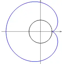 - (geometry) An epicycloid with exactly one cusp; the plane curve with polar equation - approximately heart-shaped