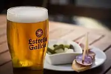 Inherited from Latin cervēs(i)a. Compare Portuguese cerveja, Spanish cerveza.