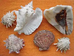 This refers to the shell of sea animals such as mollusks and bivalves, not to land animals. The shell of a turtle is referred to as a carapace, and the shell of a snail is referred to as a coquille.
