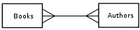 The crow's-foot notation indicates that an author can write several books, and a book can be written by several authors.