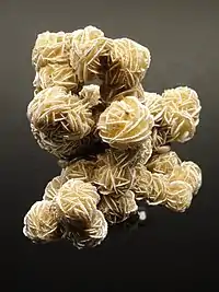 - (mineralogy) A rosette of gypsum or barite crystals formed under certain conditions.