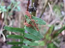ebony spleenwort, showing spores and ebony-colored rachis (stem)