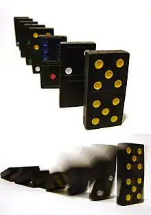 - (idiomatic) domino effect (situation in which one event sets off a chain of additional events)